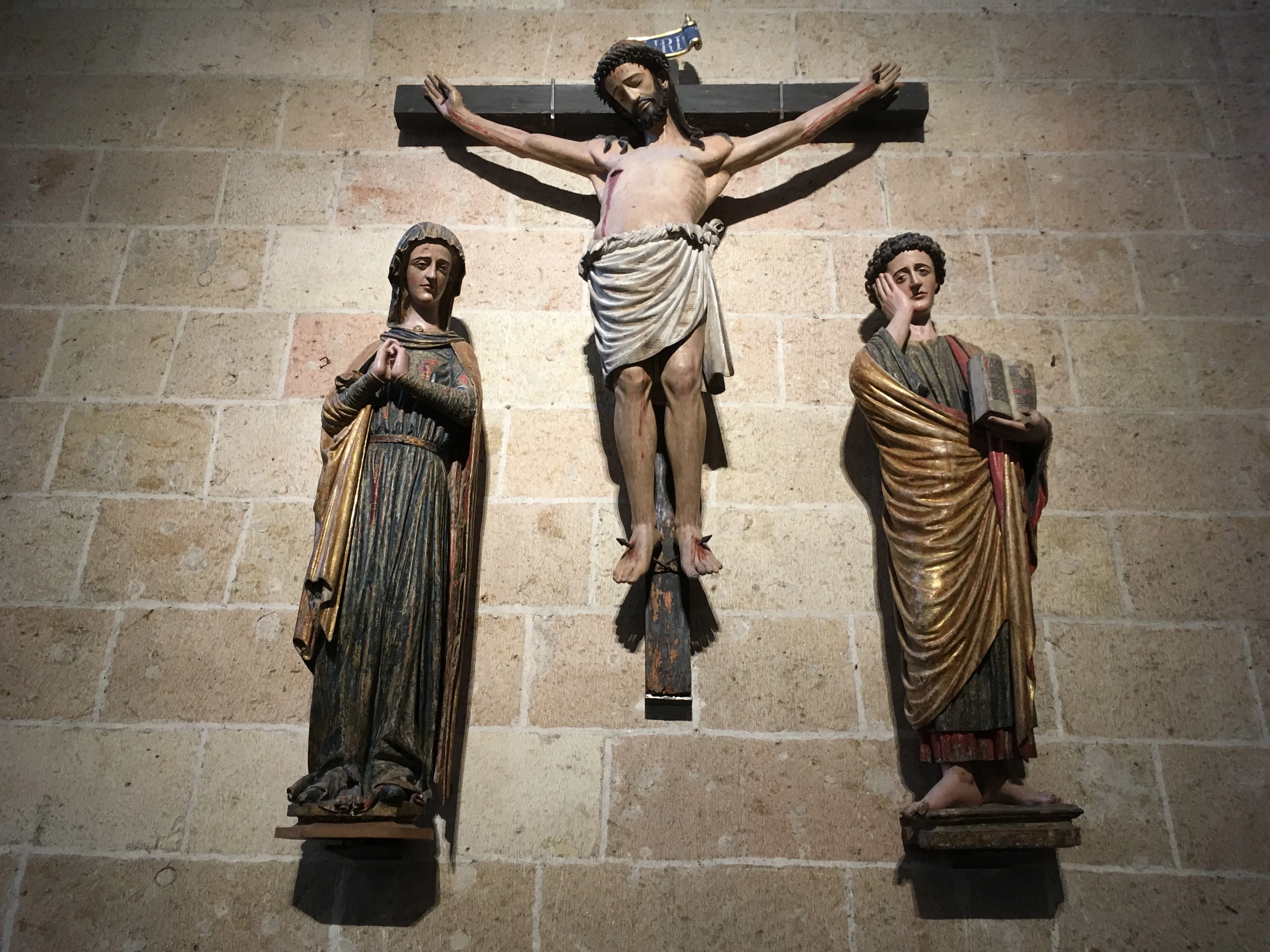 Przechadzam się po względnie pustym wnętrzu świątyni. Barokową ambonę zdobi płaskorzeźba przedstawiająca scenę zwiastowania Najświętszej Maryi Pannie wieści o narodzinach Jezusa, a także wizerunki czterech ewangelistów. Figura Maryi zdobi także Capilla Mayor. Święta Droga (Via Sacra) to szlak wewnątrz katedry wytyczony nagrobnymi płytami upamiętniającymi tutejszych biskupów. Warto zwrócić uwagę na malowidło, które wyszło spod pióra Ignacio de Ries, które powstało po zakończeniu epidemii dżumy w XVI wieku. Na koronie drzewa życia hulaszcze życie trwa w najlepsze, podczas gdy po drzewem śmierć z kosą tylko czeka za swe ofiary, Jezus natomiast bije w dzwon dla opamiętania.