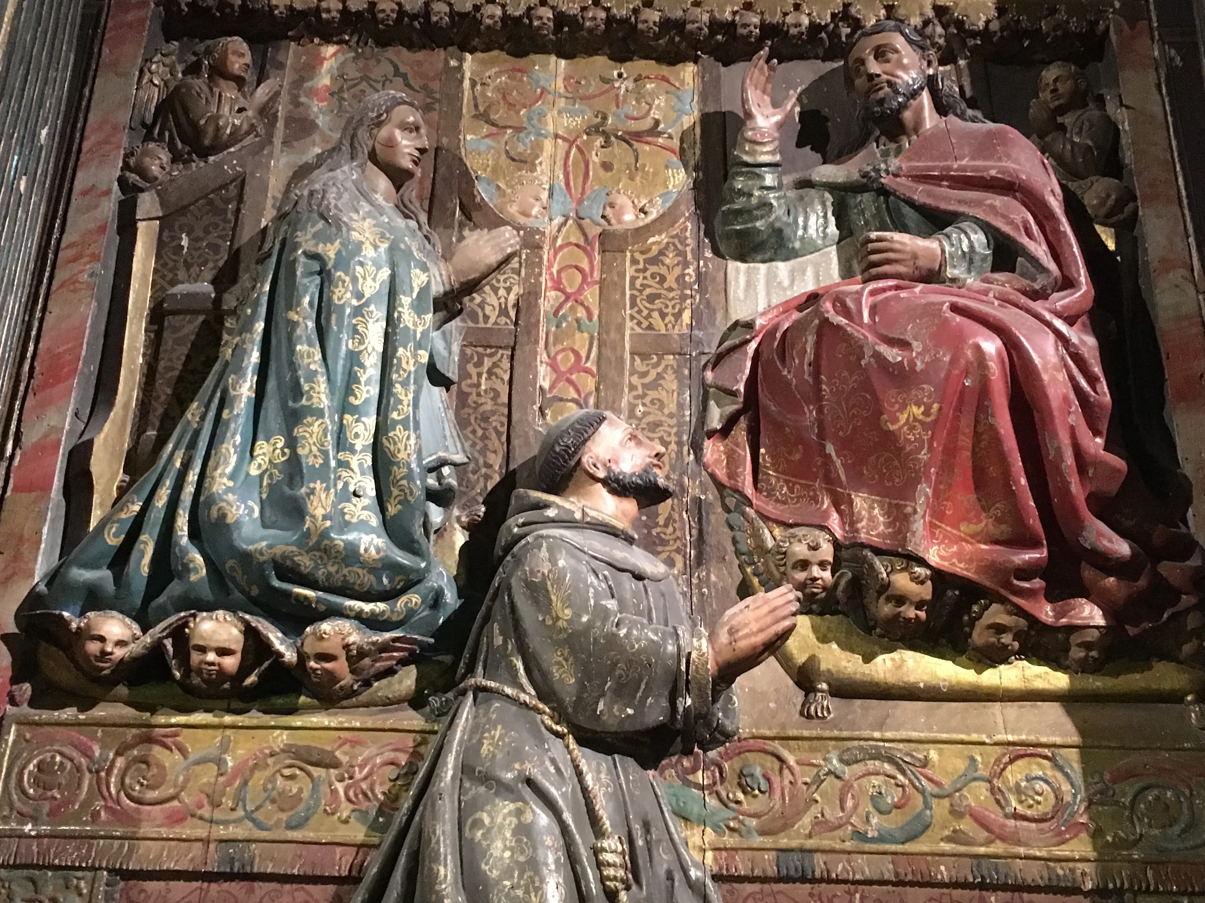 W kościele Corpus Christi. Jezus błogosławi św. Franciszka w obecności Maryi