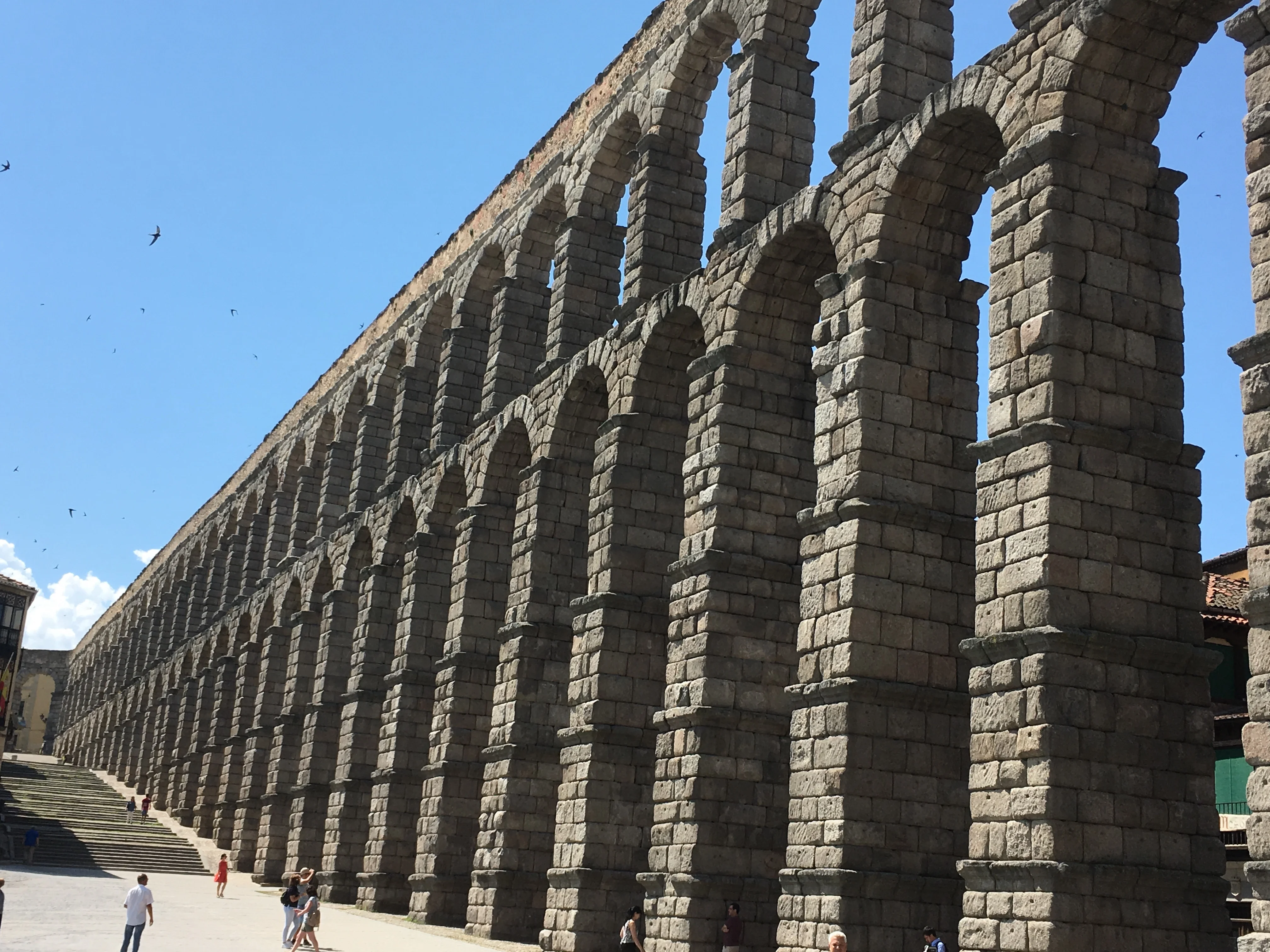 Miasto słynie z akweduktu, który wybudowano tu około roku 100 n.e., może nawet nieco wcześniej – za czasów Wespazjana. Dostarczał wodę z odległości piętnastu kilometrów. Dziś z antycznej konstrukcji pozostał niecały kilometr, zaopatrzony w sto dwadzieścia dziewięć przęseł. Rzymianie opanowali do perfekcji sztukę budowy akweduktów. Najpierw prowadzono długie i żmudne obliczenia. Chodziło o wyznaczenie kąta nachylenia całej konstrukcji. Nie mógł być zbyt mały, bo woda przestałaby się poruszać, ale nie mógł być także zbyt duży, bo płynęłaby zbyt szybko, rozlewając się z koryta lub niszcząc je. Nachylenie akweduktu segowijskiego wynosi 1 procent.