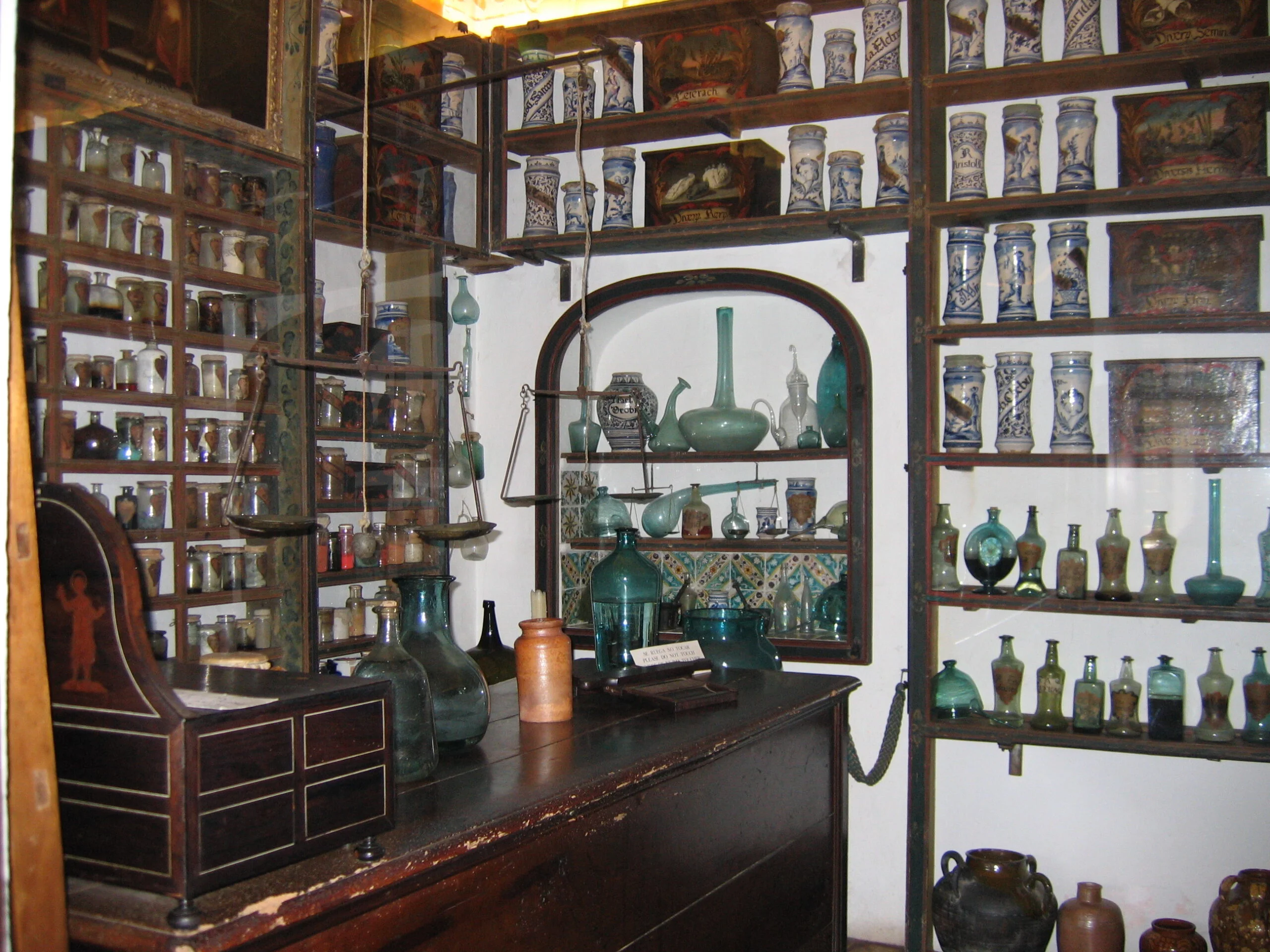 Today I am looking with fondness at the places where Chopin and Sand spent several months of their lives. A small but magnificent library still smells of leather; it is filled with antique books, encrusted furniture in all possible shades of bronze, simple household equipment, spacious wardrobes, huge chests of drawers, an elegant desk… There is also a cloister apothecary abounding in mysterious vials, colorful bottles, containers of every possible size and shape, boxes and ampoules. As if some invigorating or poisonous potions had been prepared here according to secret recipes… All of these recreate the atmosphere of the old days and probably not much has changed for almost two centuries. Through open windows framed with wooden shutters, silent music of nature is entering the interior: the cheerful twitter of birds, the soft rustle of trees in the garden. Ideal conditions for creative work, for composing, for writing… Or they would have been ideal had it not been for Chopin’s failing health and tensions provoked by teenage Maurice who did not approve of the relationship between his extrovert mother and the outstanding pianist.