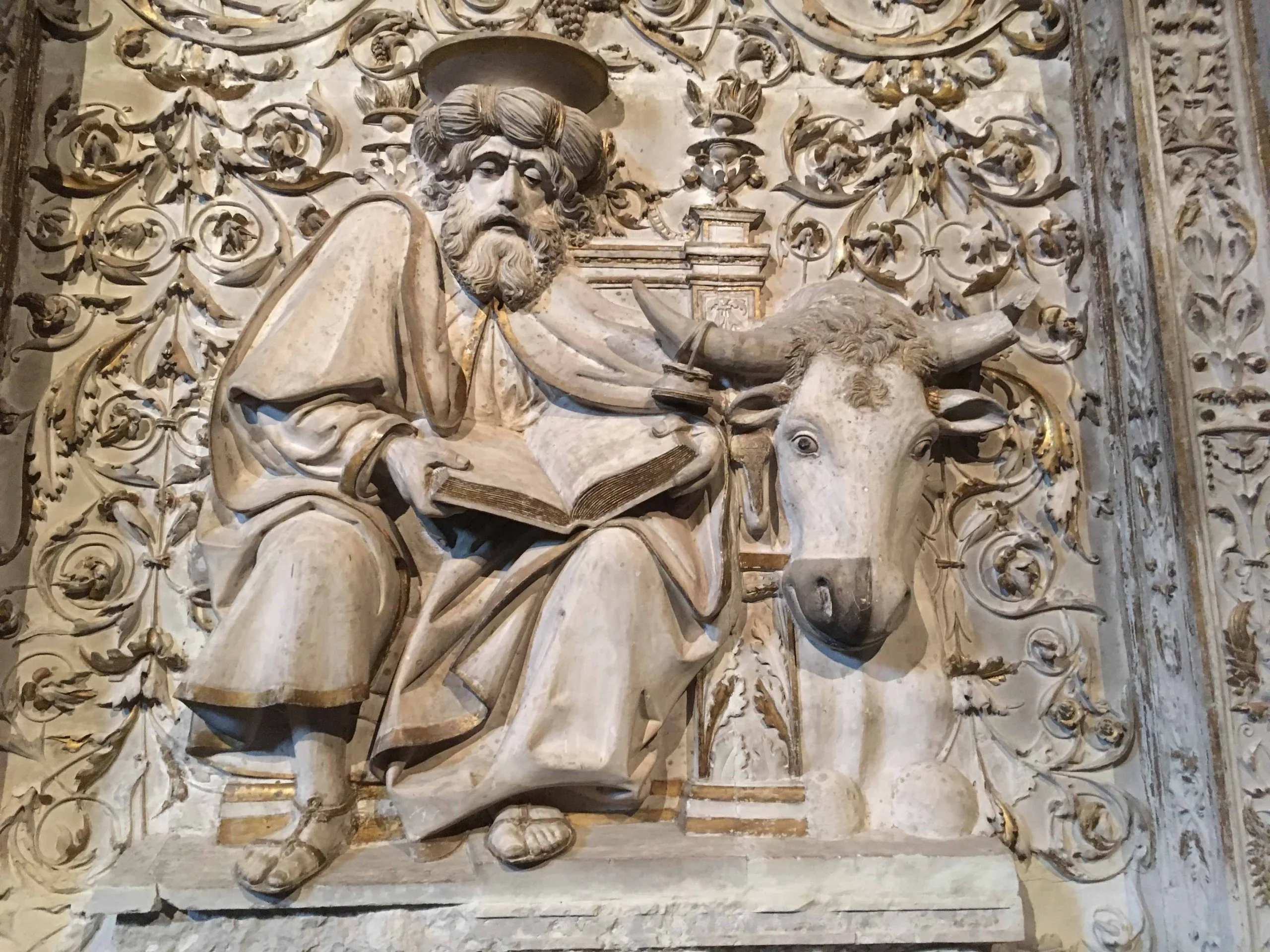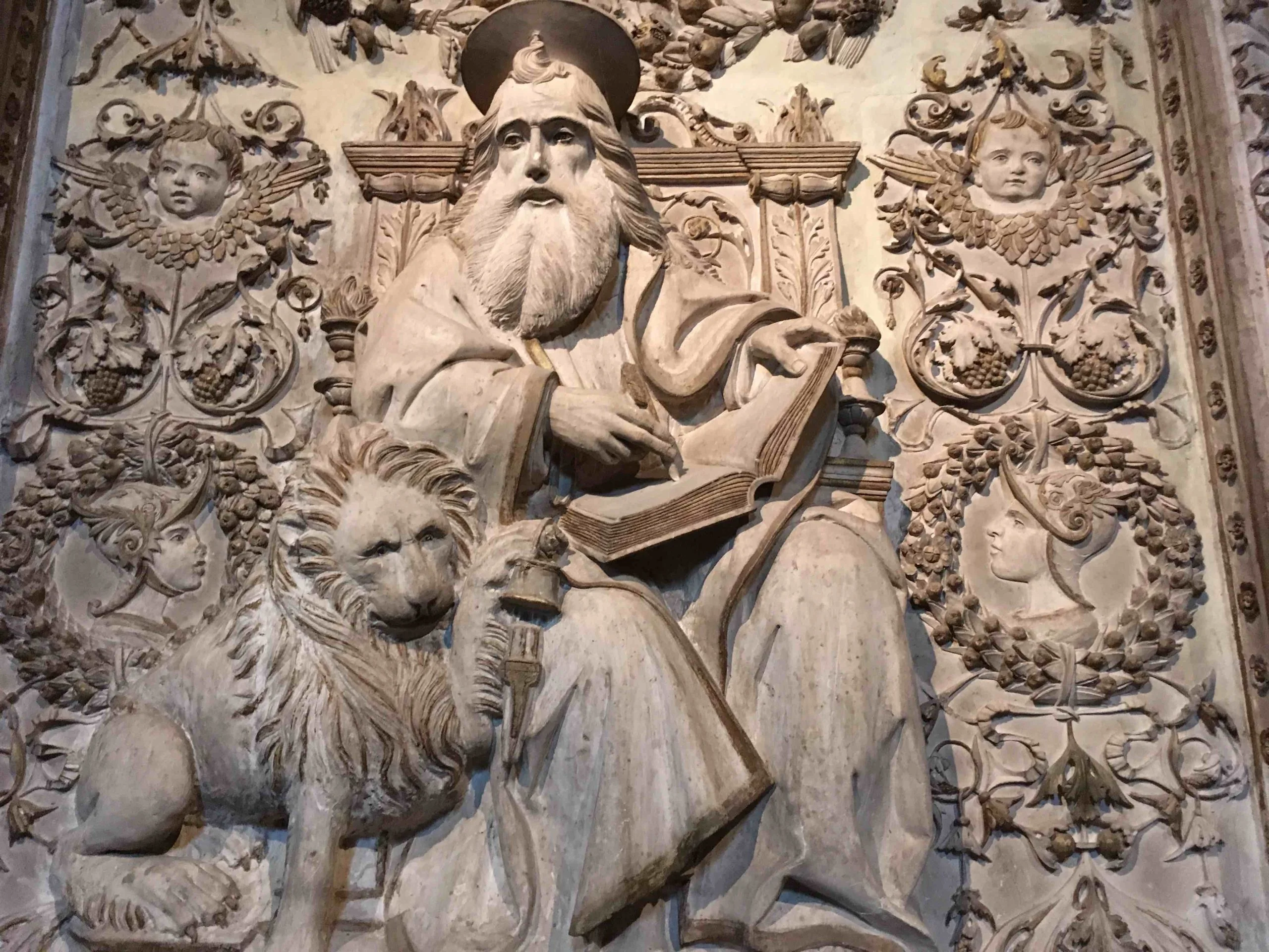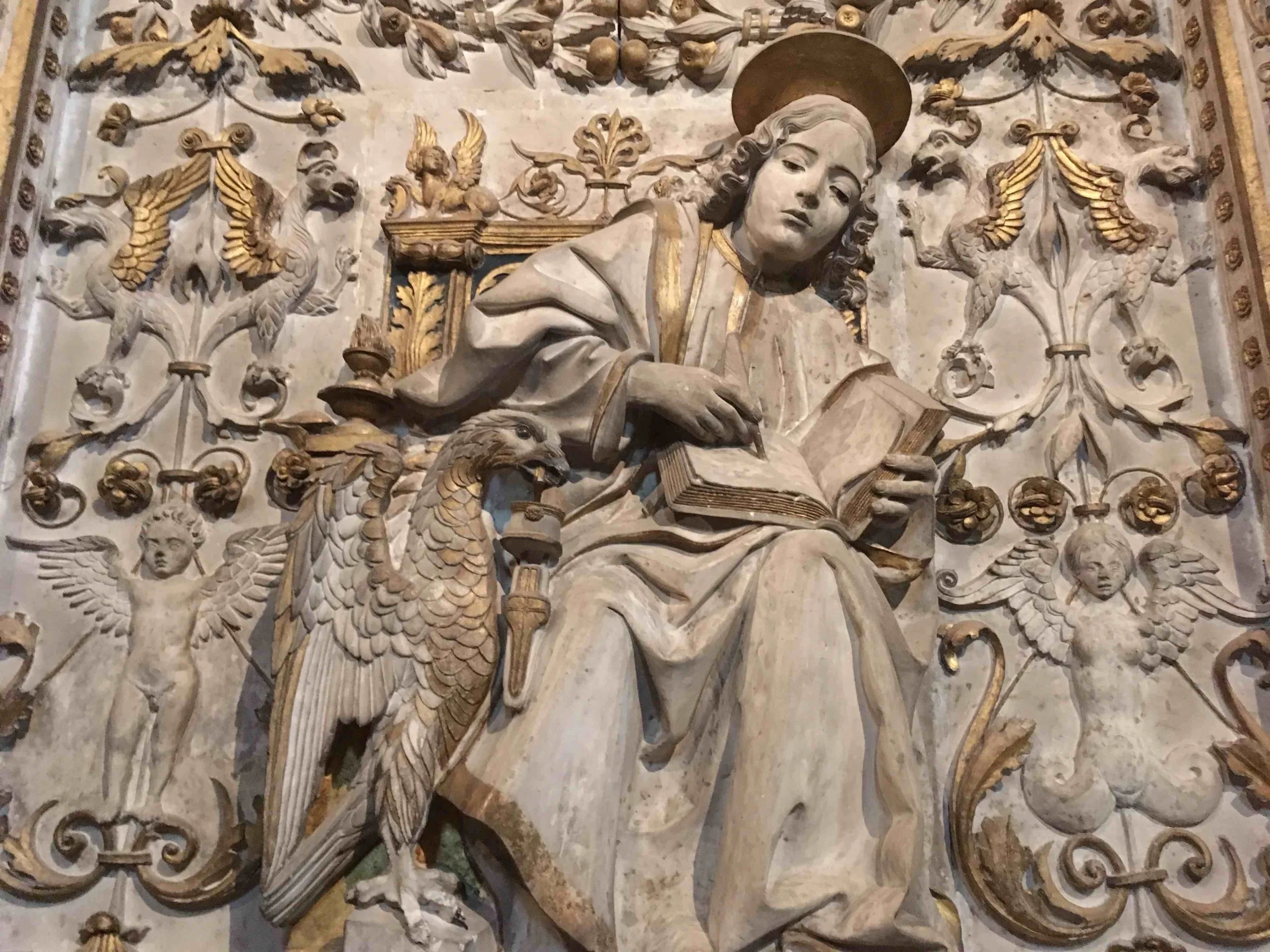 Poniżej fotografie płaskorzeźb ewangelistów i ich symboli z katedry Chrystusa Zbawiciela z Avila w Hiszpanii