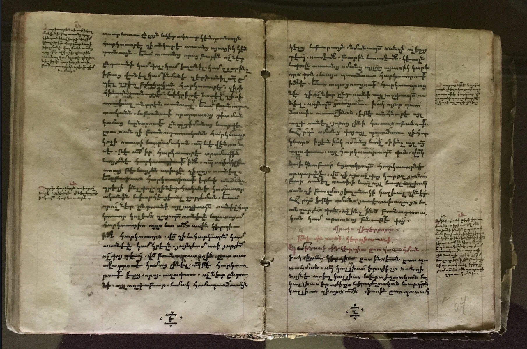 Po chwili przed oczyma niczym w filmie ukazują mi się kolejne bezcenne dzieła. Jest tu Geografia Ptolemeusza z 1482 roku, zdobiona kolorowymi mapami. Jest kopia poematów Nersesa Sznorhali wykonana w XVI stuleciu. Jest czternastowieczna kopia pochodzącego z V wieku przekładu komentarza do Pięcioksięgu Filona z Aleksandrii. I Efrem Syryjczyk – Hymny tłumaczone w V wieku na ormiański, a skopiowane osiem stuleci później. Spoglądam na średniowieczny rękopis dzieł Arystotelesa, których przekładu dokonano w VI wieku. Zachwycam się także czternastowieczną kopią Historii Euzebiusza z Cezarei i nieco późniejszą – Cyryla Jerozolimskiego oraz Grzegorza z Nyssy. Ba, natrafiam nawet na zwój Tory sporządzony zgodnie z surowymi zasadami kaszrutu!